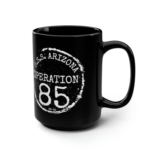 Introducing our exclusive U.S.S. Arizona “Operation 85” Support Coffee Mug, crafted to elevate your daily coffee or tea experience. This sleek black mug, available in a generous 15oz (0.44l) size, promises to deliver the perfect boost of caffeine to kick-start your mornings or accompany you on cozy, rainy days.