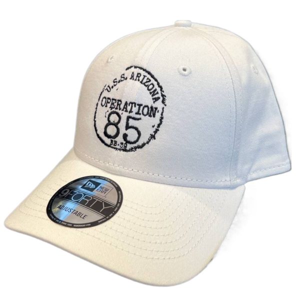 Crafted with attention to detail and quality, this white hat proudly features the fully embroidered “Operation 85” logo on the front, showcasing your support for this historic mission. The back of the hat is equally thoughtful, with the USSArizona.navy website embroidered, connecting you to a community of history enthusiasts and supporters.