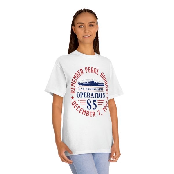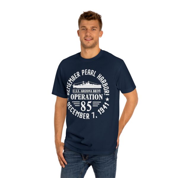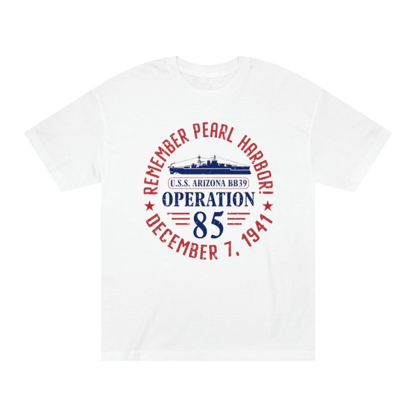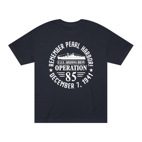 Support the U.S.S. Arizona “Operation 85” Project with this unisex tee for every casual outing. Our new “Remember Pearl Harbor!” design pictured with the magestic U.S.S. Arizona battleship BB-39 within. A great item or gift for any Navy, WWII or Pearl Harbor history buff.