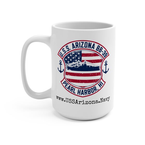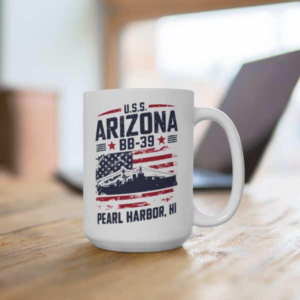 Embrace the spirit of remembrance and support “Operation 85” with our USS Arizona BB-39! Coffee Mug. This exclusive mug is a heartfelt tribute to the U.S.S. Arizona and ‘Operation 85,’ featuring a classic white design that resonates with history and patriotism. Perfect for those who can never get enough coffee, this mug offers a generous 15oz capacity to fuel your day. Crafted from white, durable ceramic, it’s not only robust but also a piece of history in your hands. The high-quality finish makes this mug a cherished item for every true coffee lover and history enthusiast. Whether you’re sipping your morning brew or enjoying a quiet evening, this mug serves as a powerful reminder of bravery and sacrifice.