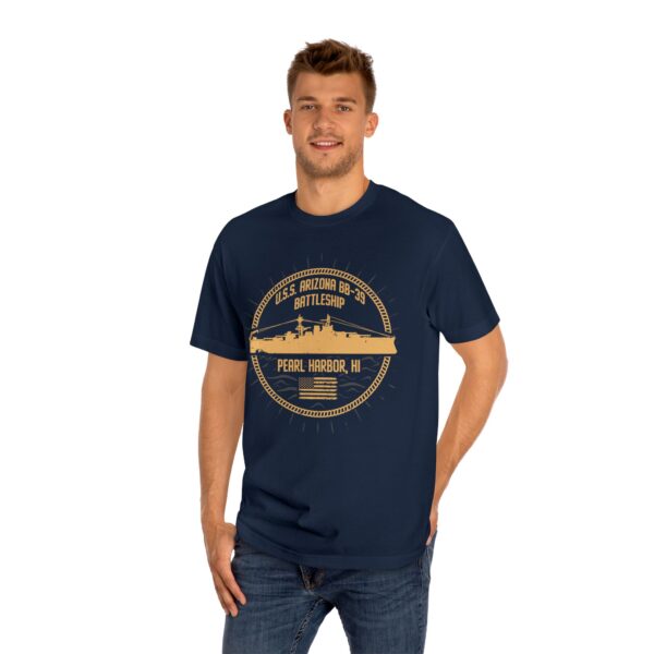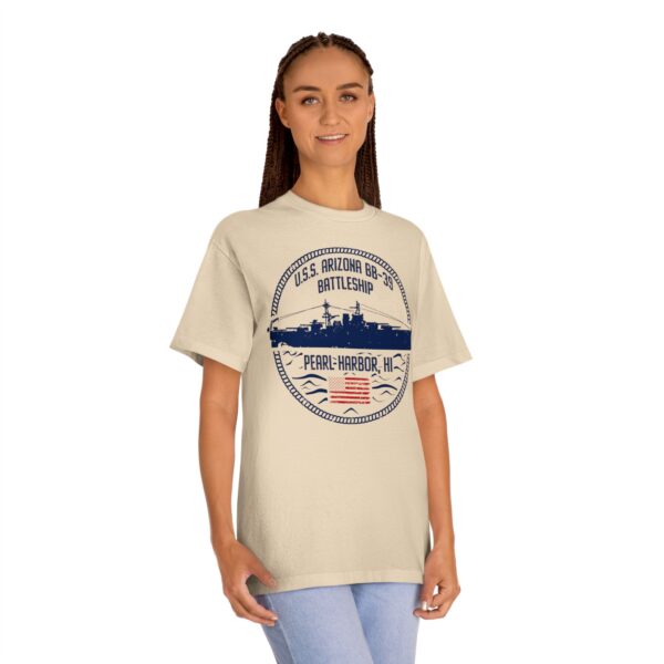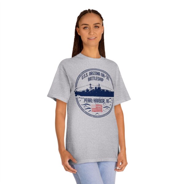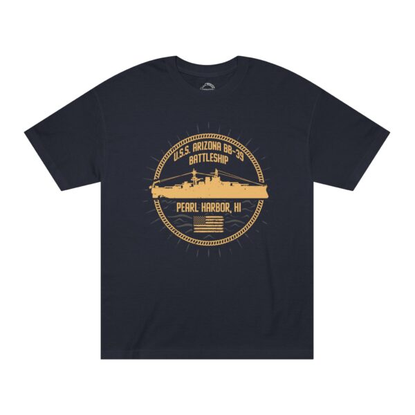 Support “Operation 85” and the U.S.S. Arizona Project with this Circle Patriotic U.S.S. Arizona unisex tee for every casual outing. A great item or gift for any Navy, WWII or Pearl Harbor history buff.
