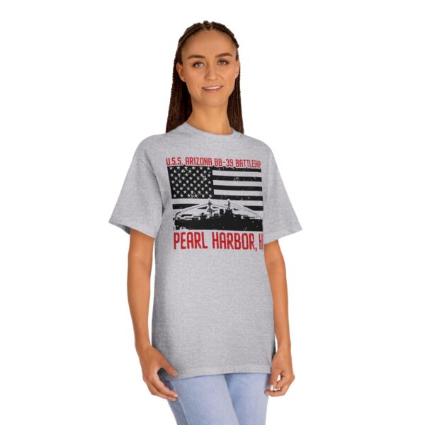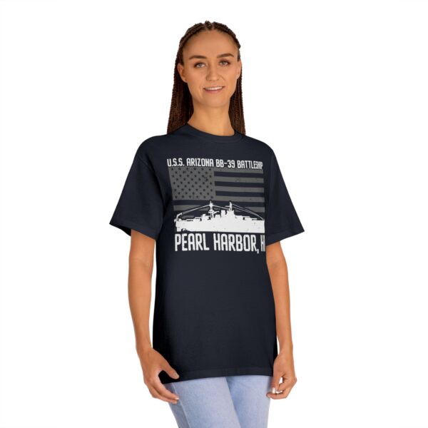 Support “Operation 85” and the U.S.S. Arizona Project with this patriotic U.S.S. Arizona unisex tee for every casual outing. A great item or gift for any Navy, WWII or Pearl Harbor history buff.